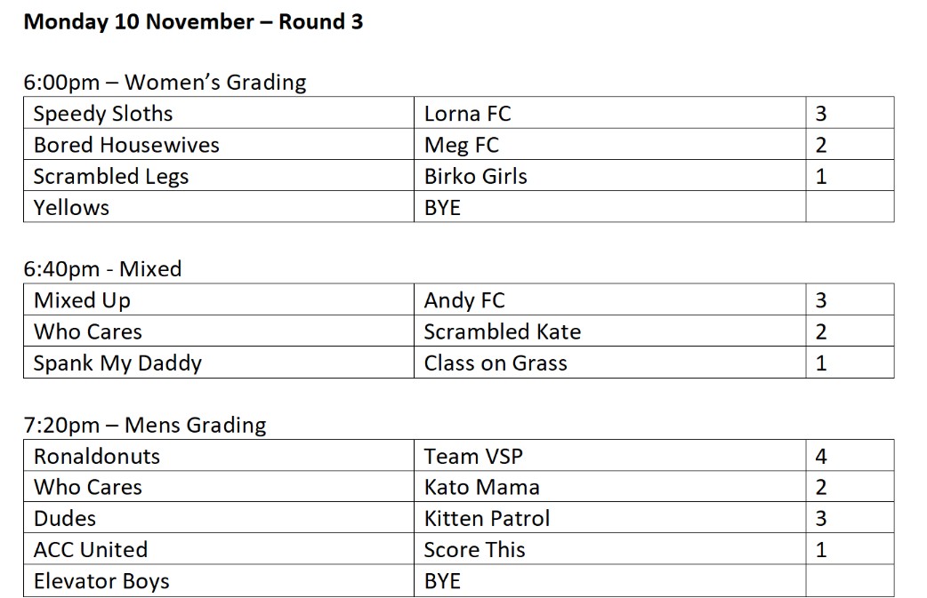 Teams with a Bye – you are welcome to come down and have an inter-squad practice game. We can provide a Referee if you want. Please let us know if you’re coming down and if you need a Ref: