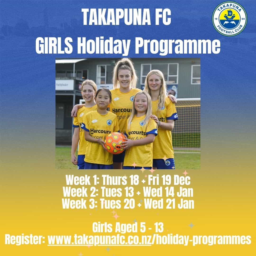 **If you’d like your child to attend a programme during the week of January 26th, please email manager@takapunafc.co.nz to register your interest. We’ll confirm the exact dates closer to the time.**